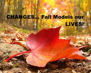 Today it is not the FALL season that I want to emphasize, it is US as human beings living a life of CHANGE! As people do we have “SEASONS” of our lives just like our planet earth? Yes, that is a well known topic, but usually people label them in reference to age. I’m sure you’ve heard the concept too. But, here’s a different thought.