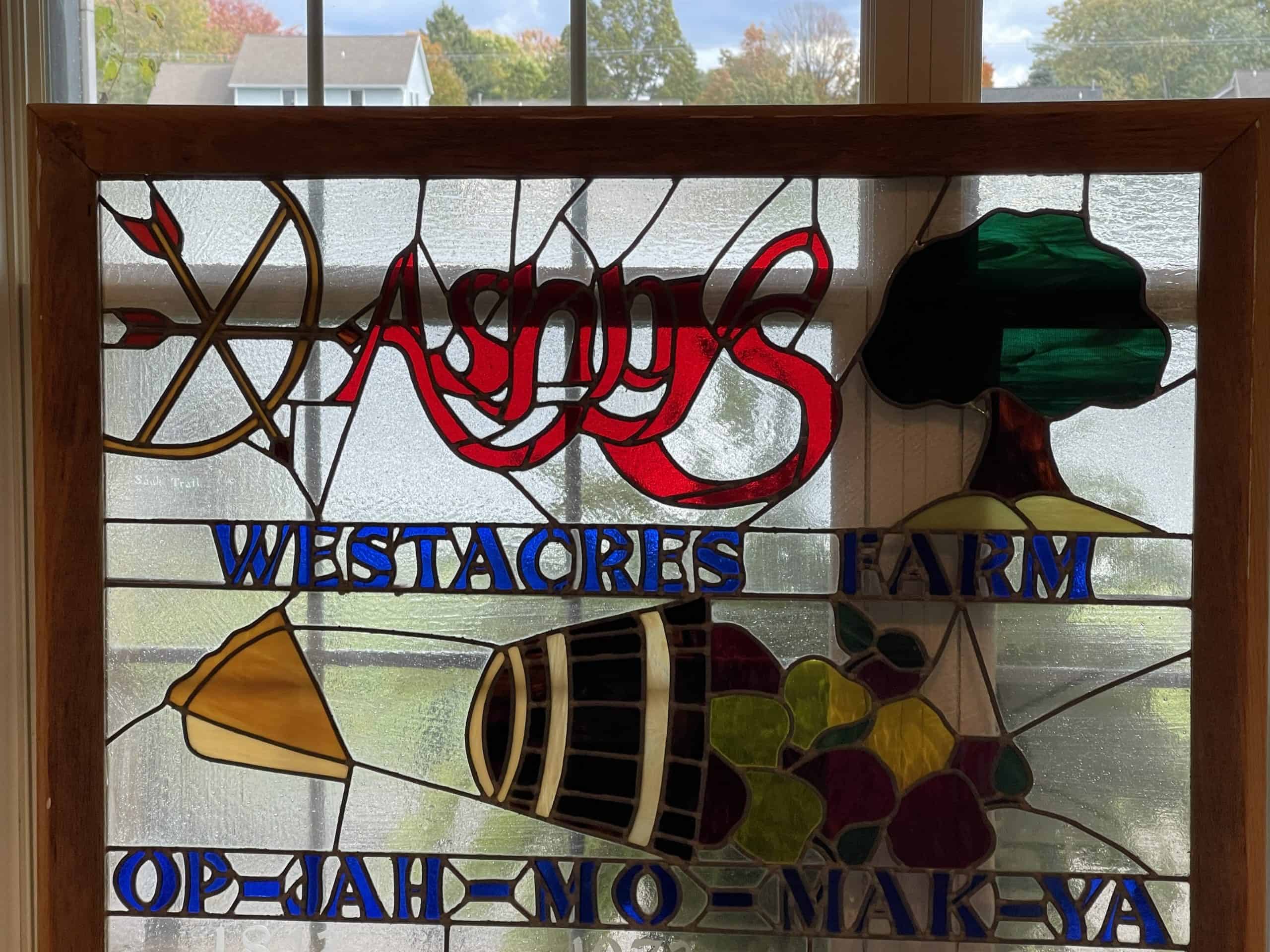 After our father retired and took on our grandfather’s farm and apple orchard, they named it Ashby’s Westacres FARM. They even took on the TREE Logo that still exists in that very unique subdivision we called home. ( The photo is a Stained Glass Window I inherited from my parents.) Last weekend, Doug and I were visiting our grandson who now lives in the area working for GM. We had a marvelous time sharing my roots with him. And somehow the conversation kept going to how MUCH things have changed in the area and how it “used to be” when I was young. Oh the CHANGES during my life… were threading through my mind.