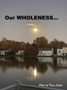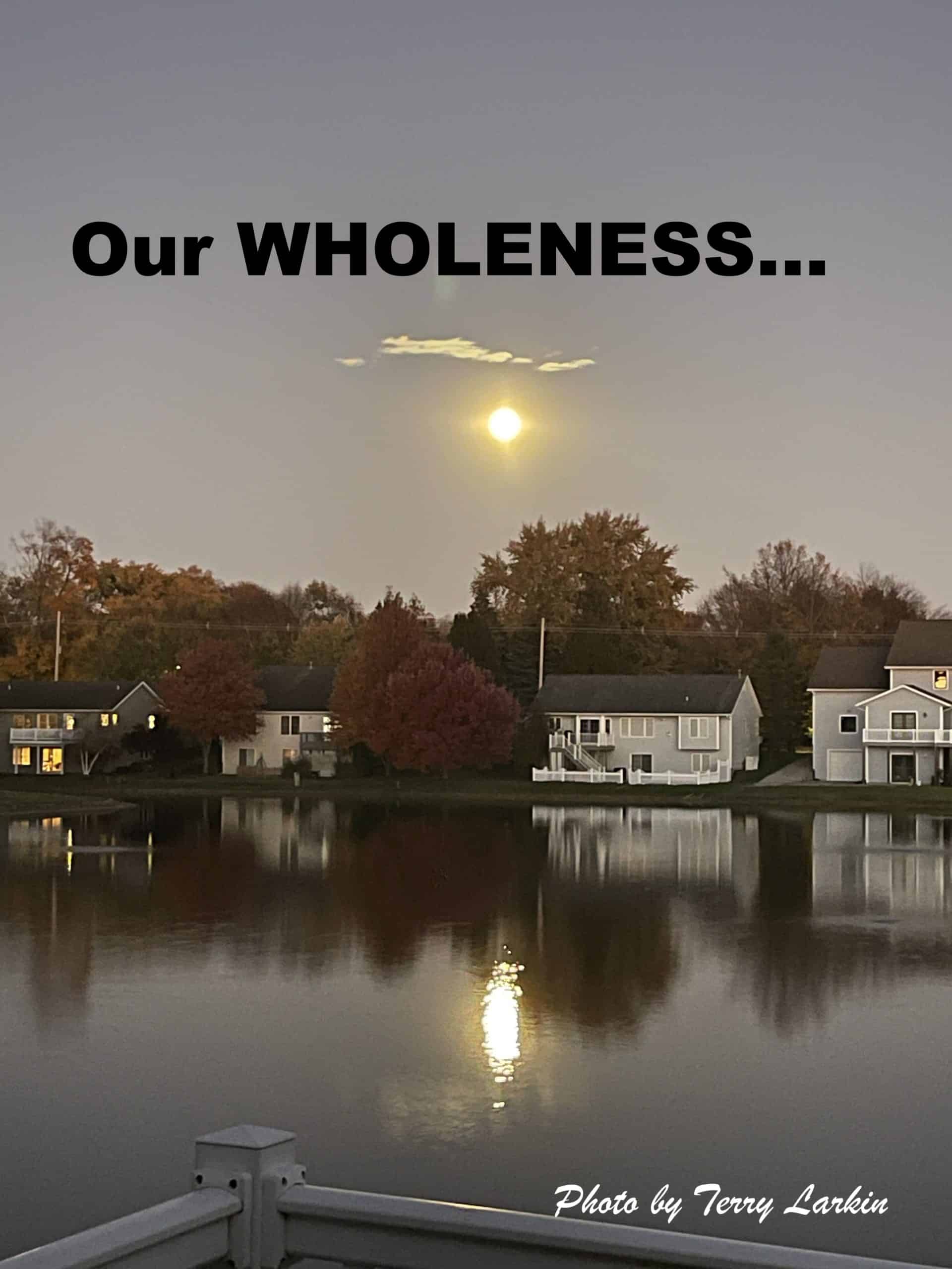 What if instead of worrying about lack we have in any given day, we ask ourselves, ” Are we allowing our WHOLE SELF into our existence into each day?” I LOVED the full moon this past weekend…thinking how THAT is like a symbol of our WHOLENESS. But, as wonderful as it is, we too often slice ourselves down to a half moon or even the sliver of a moon without realizing it. I KNOW we are all like the FULL moon but, I don’t always let the full moon shine!