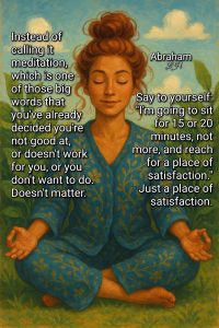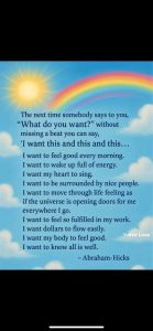 I have found that for myself, I needed to add the layer of gratitude and appreciation for each and every guide or spirit Being that might be helping! And that is an every morning exercise along with my yoga and meditation…even if I have felt no contact. As the sun rises over our lake…I find myself staring into it and picturing them all right there WITH me in the light. Or even WITH me in the rain! They are THERE and I KNOW that for certain. That lifts me up in the LIGHT that I know I can SHARE every single day in one way or another! But, I think the daily practice keeps me uplifted enough to get me through even the most difficult day. Knowing that some of you struggle with meditation…I loved receiving both of these photos and quotes from Abraham Hicks at just the right moment! Click on the photos so you can read the words!