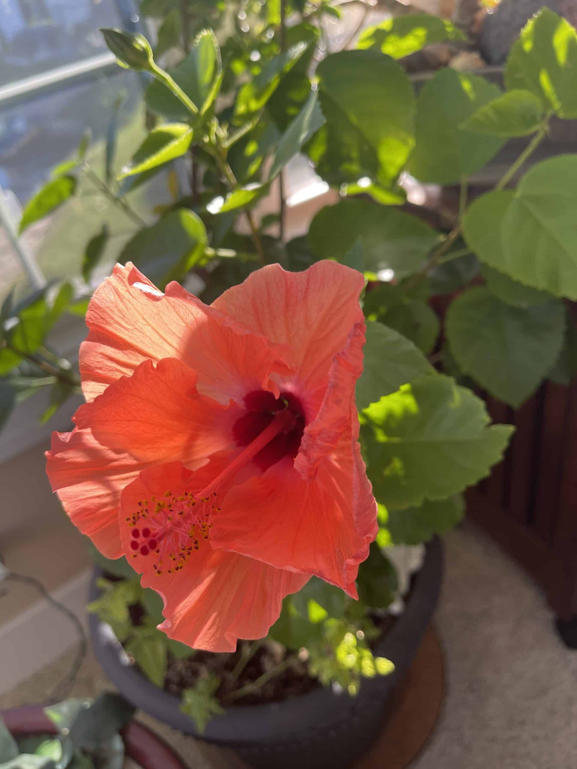 As I opened up my eyes I saw the “RAYS of LIGHT” coming from one of my candles. It was the one that was flickering wildly when I sat down. The rays of light were drifting over to what I call my BILL plant. ( He gave it to me before his death) I think I sent a picture of it during the summer when outside it was blossoming beautifully at a special moment. I brought the plant inside back in October when it began to get really cold at night. Eventually I know to simply cut it back and let it rest for the winter, so I can put it back outside next spring. But, I couldn’t make myself cut it back this year and thought…oh well, I’ll enjoy it for awhile on my porch. The candlelight rays were shining right ON the plant where there was a blossom opening. Oh my, I was not expecting blossoms! But, in my frantic week I had neglected to notice that buds were forming. I KNEW immediately that my brother BILL was WITH me…and I began a conversation. I had almost a whole second hour being grateful for ALL that is, transcending all perceived limitations and finding the Divinity that lives within us ALL I took a picture of the blossom as it opened.