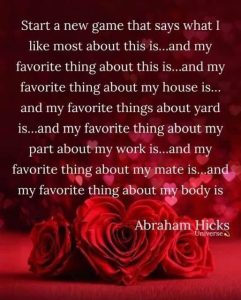 And…while we are trying to be in gratitude for ALL that is…I loved the “game” that Abraham Hicks suggests…enjoy the photo below. Click on it to see the words more clearly and remember…